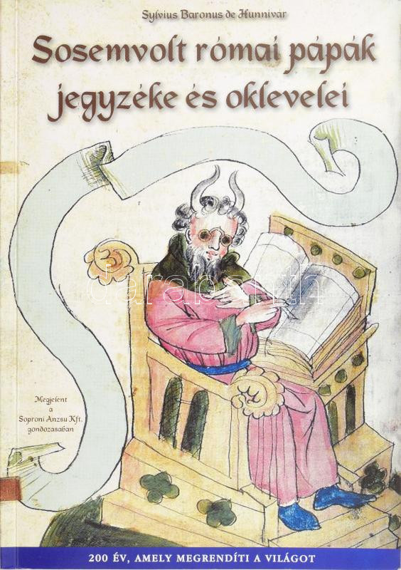 [Hunnivári Zoltán] Sylvius Baronus de Hunnivár: Sosemvolt római pápák jegyzéke és oklevelei. 200 év, amely megrendíti a világot. Fertőszentmiklós, én.,Soproni Anzsu. Kiadói papírkötés.