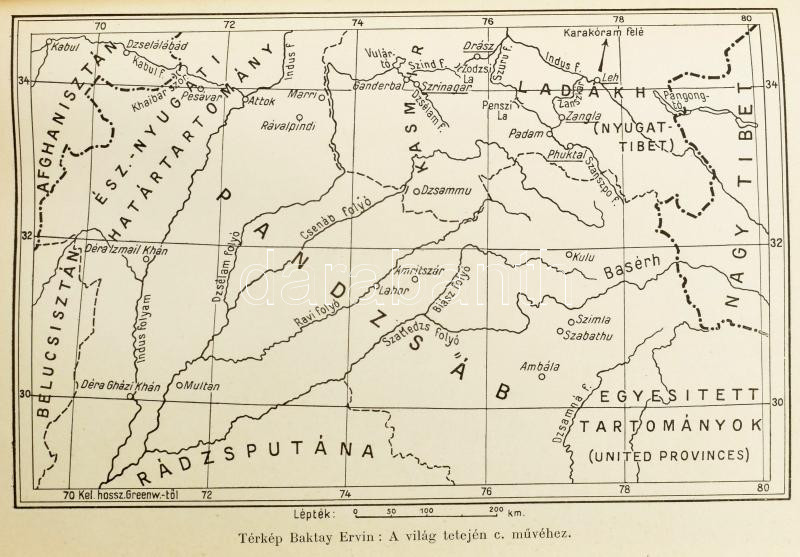 Baktay Ervin (1890-1963): A világ tetején. Kőrösi Csoma Sándor nyomdokain Nyugati Tibetbe. Magyar Földrajzi Társaság Könyvtára. Bp., [1930], Lampel R. (Wodianer F. és Fiai) Rt., 1 (címkép) t. +310 p.+30 (fekete-fehér képtáblák) t. + 2 (térképek) t. Első kiadás. Kiadói dúsan aranyozott egészvászon sorozatkötésben, a borítón kis kopásnyomokkal, a hátsó borítón foltokkal, de alapvetően jó állapotban.