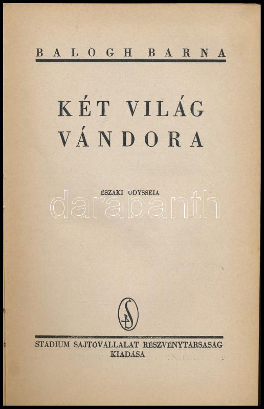 Balogh Barna: Két világ vándora Bp., é.n. Stádium. Kiadói félvászon kö... https://www.darabanth.com/hu/454-Gyorsarveres/454.0/Konyvek/Konyvek-Utazas-helytortenet~1500014/Balogh-Barna-Ket-vilag-vandora-Bp-en-Stadium-Kiadoi-felvaszon-kotesben~II2988311