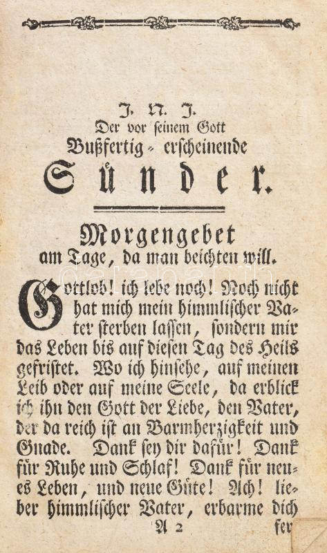 Der vor seinem Gott Bußfertig-erscheinende Sünder, wie er sich wenn er an Jesu Gnadentafel als ein würdiger Gast erscheinen will, so wohl zur Beichte, als zum Gebrauch des heiligen Abendmahls, vorbereiten soll, oder auserlesene Buß- Beicht- und Communionandachten, welche beygefüget Die sieben Bußpsalmen, nebst den Gott-geheiligten alltäglichen Morgen und Abendandachten, Zwickau 1730 Höfer. 1 t rézmetszetű díszcímlap, + 270 + (2)p. Korabeli, kissé sérült egészbőr kötésben