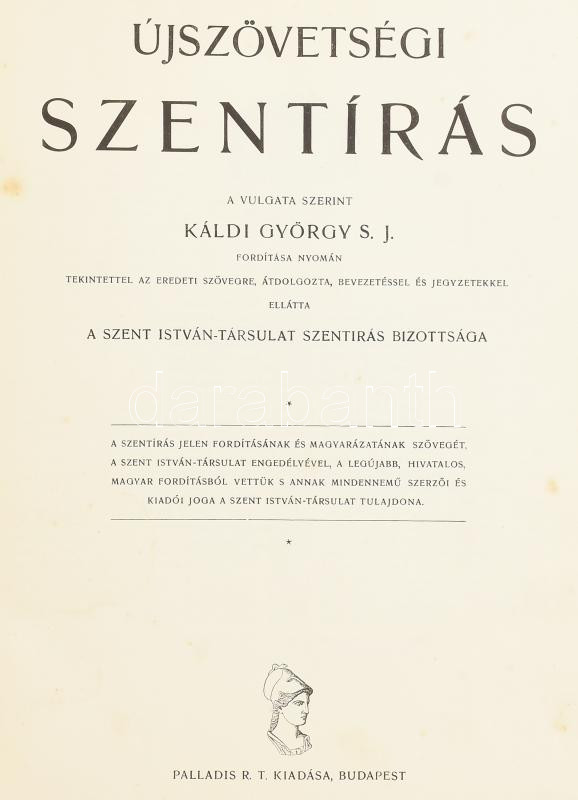 Szent Biblia. Káldi György S.J. fordítása nyomán. Bp., 1928, Palladis.... https://www.darabanth.com/hu/454-Gyorsarveres/454.0/Konyvek/Konyvek-Vallas~1500030/Szent-Biblia-Kaldi-Gyorgy-SJ-forditasa-nyoman-Bp-1928-Palladis-Illusztralt-kiadoi-eg~II2995069