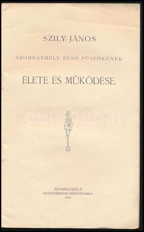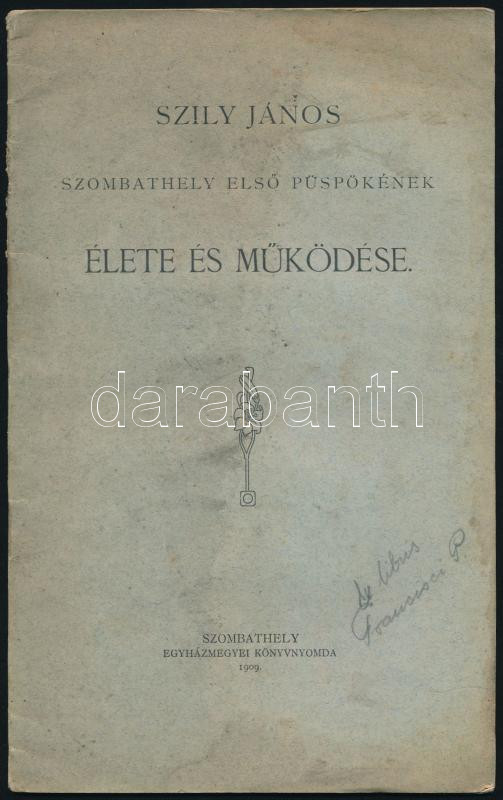 Leírás: Szily János Szombathely első püspökének élete és működése. Szombathely, 1909, Egyházmegyei Könyvnyomda, 23 p. Kiadói papírkötés, foltos.