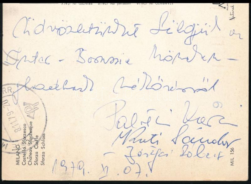 1981 Az Inter-Borussia labdarúgó mérkőzés 3 játékvezetői, közötte Palotai által aláírt képeslap / Autograph signed postcard of the referees of the Inter - Borussia Dortmund football match