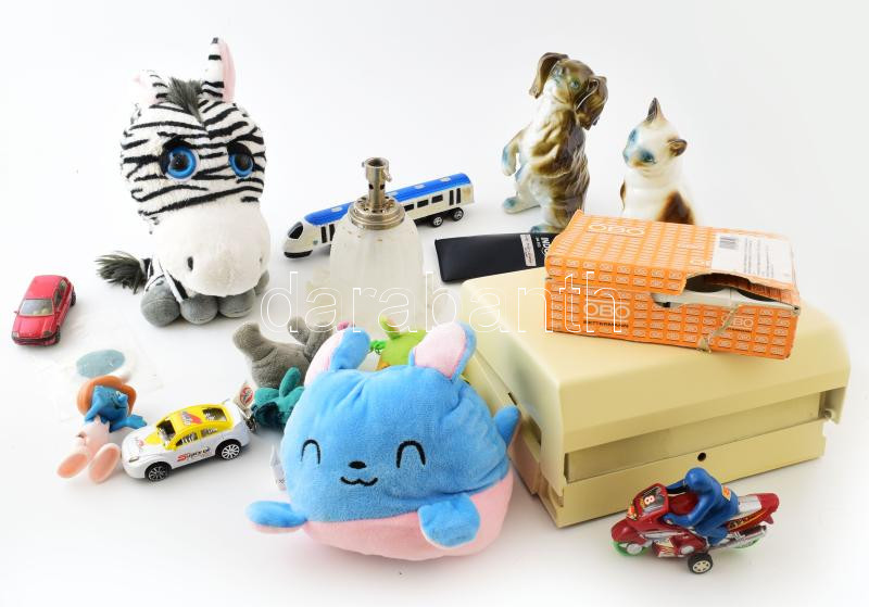 Leírás: Doboznyi vegyes bolhapiac tétel, közte mérleg, porcelán figurák, plüssök, stb. Vegyes méretben és állapotban.