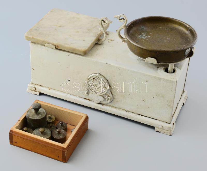 Régi asztali mérleg 35 cm, súlyokkal https://www.darabanth.com/hu/454-Gyorsarveres/454.0/Mutargy-papirregiseg-egyeb/Bolhapiac~500014/Regi-asztali-merleg-35-cm-sulyokkal~II3023039