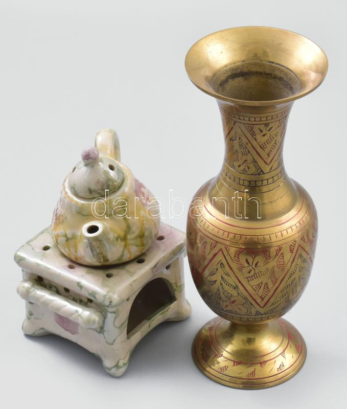 Leírás: Réz váza 20 cm + kerámia kis edény 14 cm