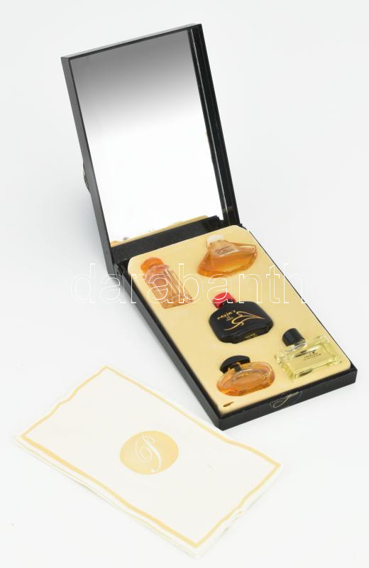 Leírás: The Perfume Collection, 5 db mini parfüm (az egyik hiányos tartalommal), tükrös díszdobozban, 16x10x3 cm