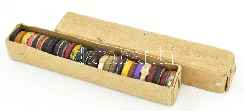 Tinta és Művészfestékgyár festékpogácsa szett dobozában, törésekkel, j... https://www.darabanth.com/hu/454-Gyorsarveres/454.0/Mutargy-papirregiseg-egyeb/Bolhapiac~500014/Tinta-es-Muveszfestekgyar-festekpogacsa-szett-dobozaban-toresekkel-jelzett-h-15-5-cm~II3026828