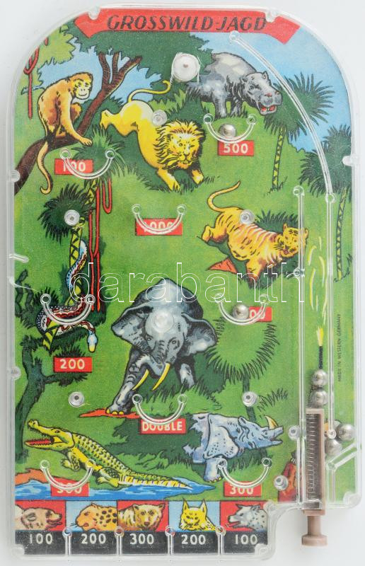Retro német flipperjáték, sérüléssel, 19x12 cm https://www.darabanth.com/hu/454-Gyorsarveres/454.0/Mutargy-papirregiseg-egyeb/Jatekok~500015/Retro-nemet-flipperjatek-serulessel-19x12-cm~II3025919
