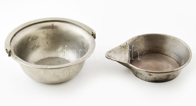 Leírás: 2 db antik fém katonai eszköz, kopással, d: 14-18 cm