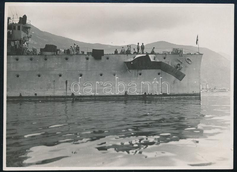 Leírás: cca 1916 Az S.M.S. Saida osztrák magyar hadihajó a trantoi tengeri csata után 9x12 cm Későbbi nagyítás