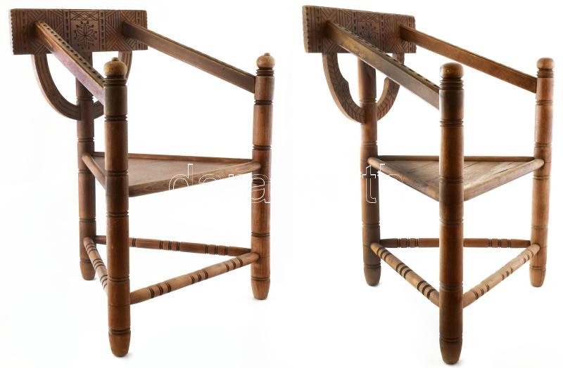 19. sz vége, Anglia, old-saxon stílusú viktoriánus "Turners" székpár. Faragott tölgyfa, furnérozott ülőfelülettel, formavilágát tekintve a 17. századi brit bútorok viktoriánus másolata. Az eredeti darabok tervezője és készítője: John Starkey asztalosmester. Háttámla: 87 cm, ülés magasság 43 cm. Kisebb sérülésekkel, egyik ülőfelületen ázással, de szerkezetileg stabil, jó állapotban. Nagyon ritka! CSAK SZEMÉLYES ÁTVÉTEL? NEM POSTÁZZUK