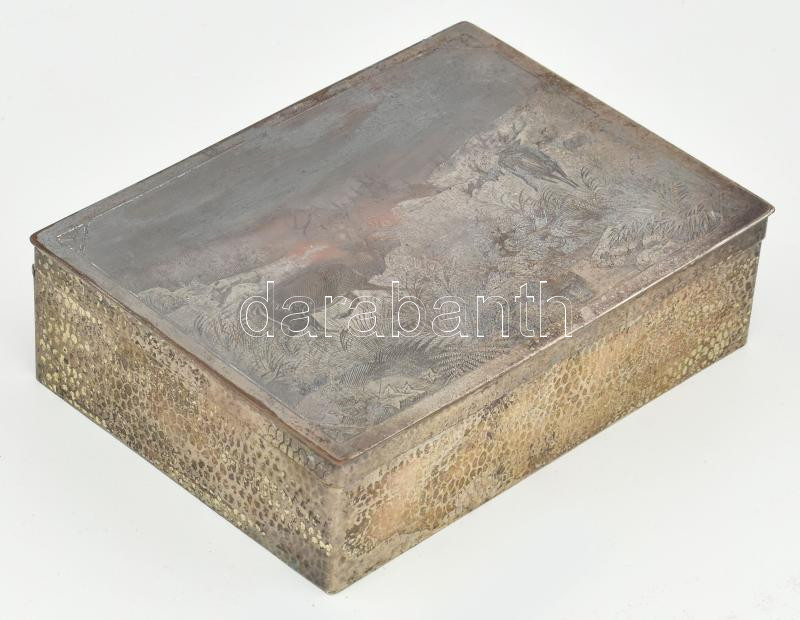 Régi szarvasjelenetes fém doboz, kopásnyomokkal, 17×12×4,5 cm https://www.darabanth.com/hu/454-Gyorsarveres/454.0/Mutargy-papirregiseg-egyeb/Mutargyak-antikvitas~500008/Regi-szarvasjelenetes-fem-doboz-kopasnyomokkal-17C39712C3974-5-cm~II3025801