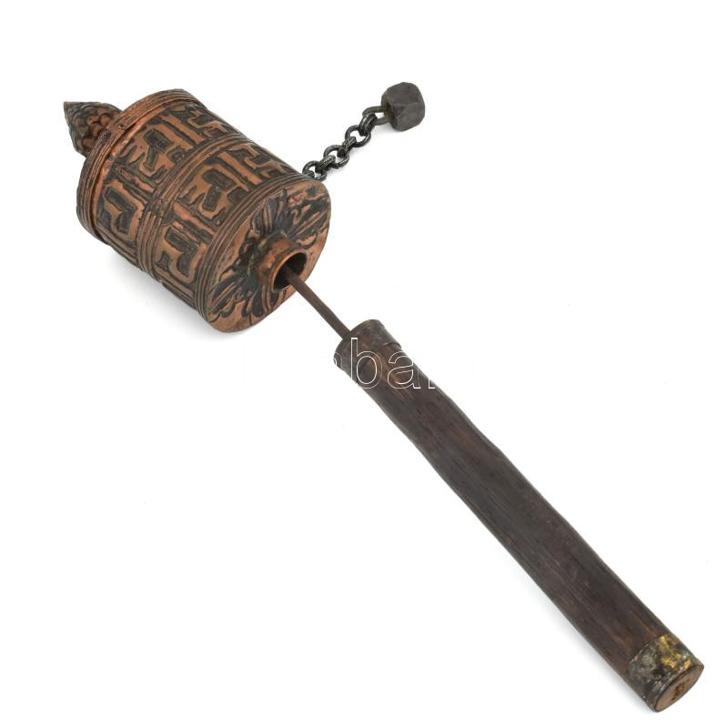 Utazó imamalom. Tibet, XIX.-XX. sz., fa, papír, réz. H: 24 cm https://www.darabanth.com/hu/454-Gyorsarveres/454.0/Mutargy-papirregiseg-egyeb/Mutargyak-antikvitas~500008/Utazo-imamalom-Tibet-XIX-XX-sz-fa-papir-rez-H-24-cm~II3027064