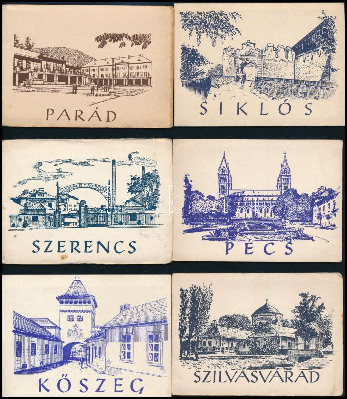 Leírás: 8 db leporelló magyar városok, tájak képeivel, Bp., Képzőművészeti Alap kiadása, változó állapotban, 7,5x10,5 cm
