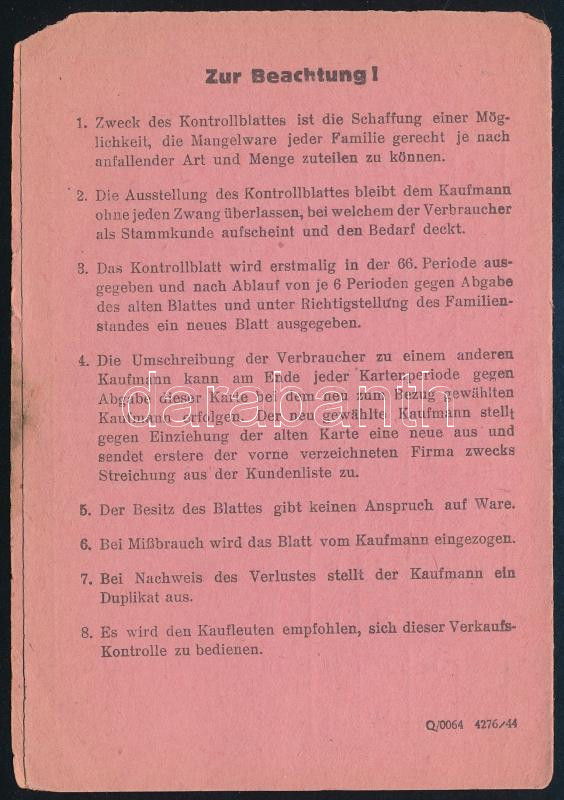 Leírás: cca 1944 Graz, Julius Meinl bevásárlási könyvecske