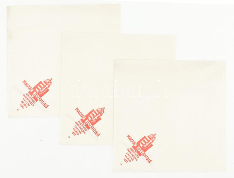 Leírás: 1933 Magyar Borkostoló - V. Nemzetközi Iparművészeti Kiállítás Milano, 3 db szalvéta, jó állapotban, 15x15 cm