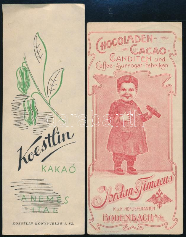 Leírás: 2 db csokoládé-kakaó számolócédula: Koestlin kakaó és Jordan & Timaeus