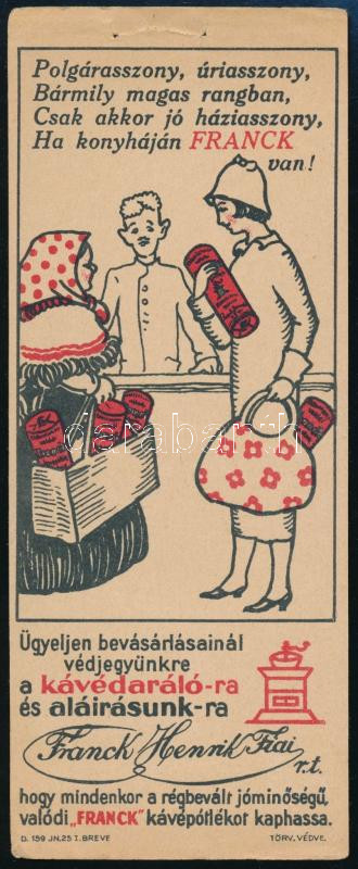 cca 1920-1940 Franck kávé számolócédula, kis sérüléssel https://www.darabanth.com/hu/454-Gyorsarveres/454.0/Mutargy-papirregiseg-egyeb/Reklam~2000024/cca-1920-1940-Franck-kave-szamolocedula-kis-serulessel~II3029248