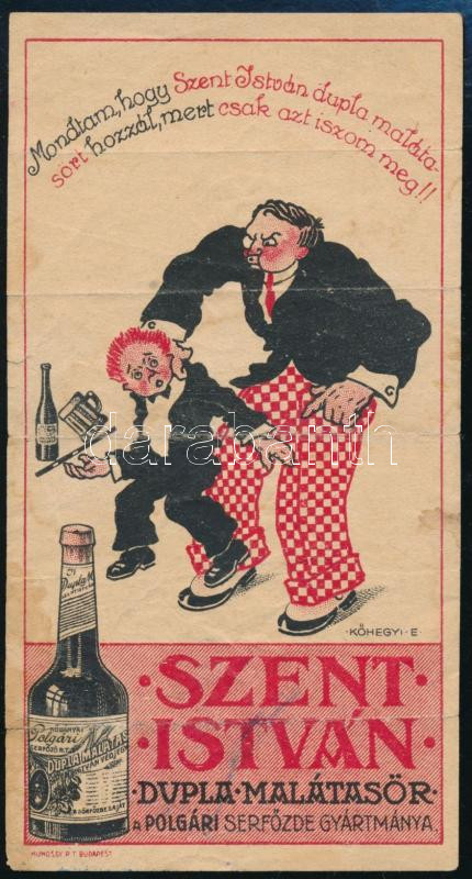 cca 1930 Szent István dupla malátasör számolócédula, szign.: Kőhegyi E... https://www.darabanth.com/hu/454-Gyorsarveres/454.0/Mutargy-papirregiseg-egyeb/Reklam~2000024/cca-1930-Szent-Istvan-dupla-malatasor-szamolocedula-szign-Kohegyi-E-kisse-foltos-apro~II3029263