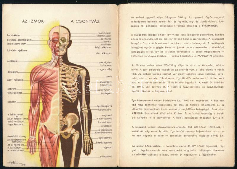 Leírás: cca 1940 Az emberi test, Bayer gyógyszergyár képes ismertető prospektusa, Bp., Klösz-ny., kissé kopott, 16x11 cm