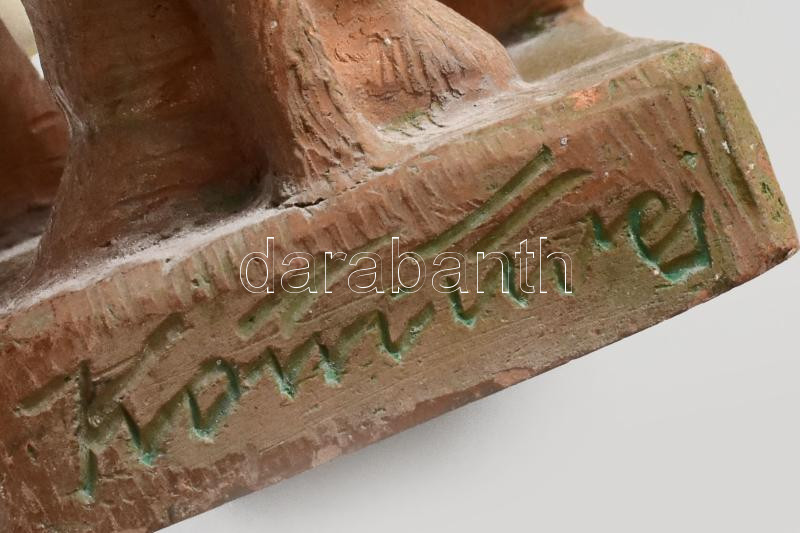 Leírás: Kőműves László: Szamaras vitéz. Terrakotta, jelzett, kopásnyomokkal, 1930 körül, m: 23 cm
