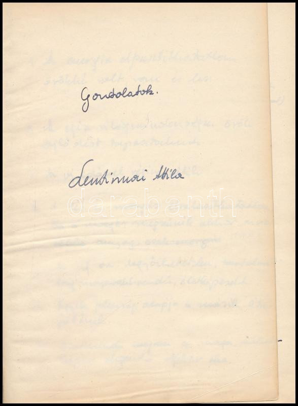 Leírás: Szentirmai Attila: Gondolatok, kézzel írt füzet, kb. 50-60 beírt oldal