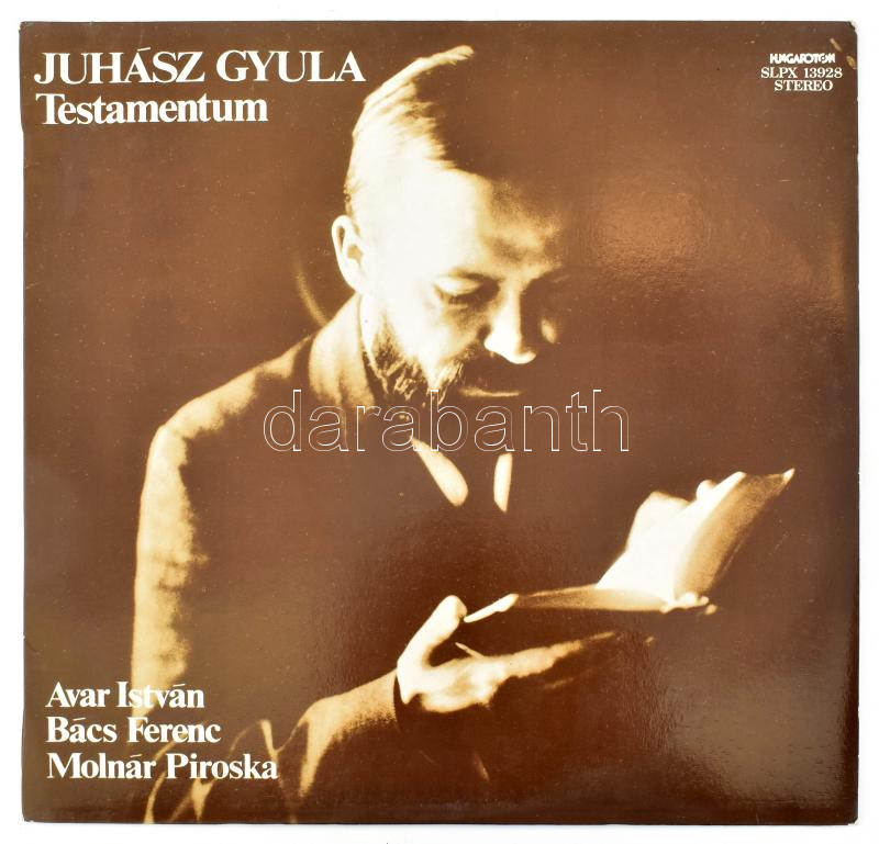 Avar István, Bács Ferenc, Molnár Piroska - Juhász Gyula - Testamentum,... https://www.darabanth.com/hu/454-Gyorsarveres/454.0/Mutargy-papirregiseg-egyeb/Zenei-bakelit-lemezek-CD-k-DVD-k~1500011/Avar-Istvan-Bacs-Ferenc-Molnar-Piroska-Juhasz-Gyula-Testamentum-Vinyl-LP-1983-Magyarors~II2949042