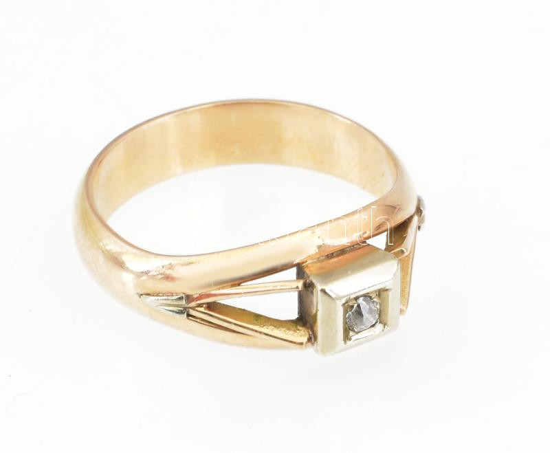 Leírás: 14k arany (Au) gyűrű gyémánttal, Jelzett br 5,45 g m: 58 cm
