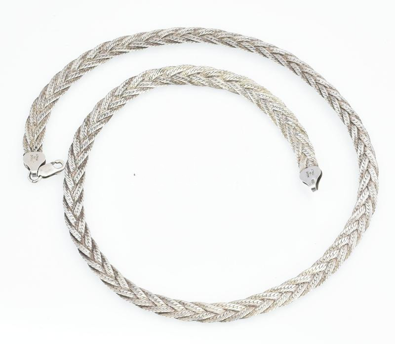 Leírás: Ezüst (Ag) 4 szálas fonott kígyó nyaklánc, jelzett, h: 45 cm, nettó: 13,5 g