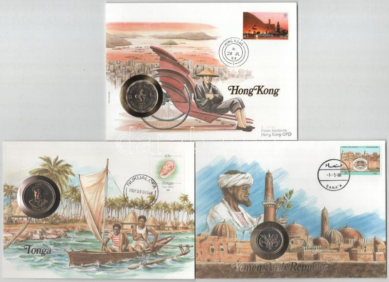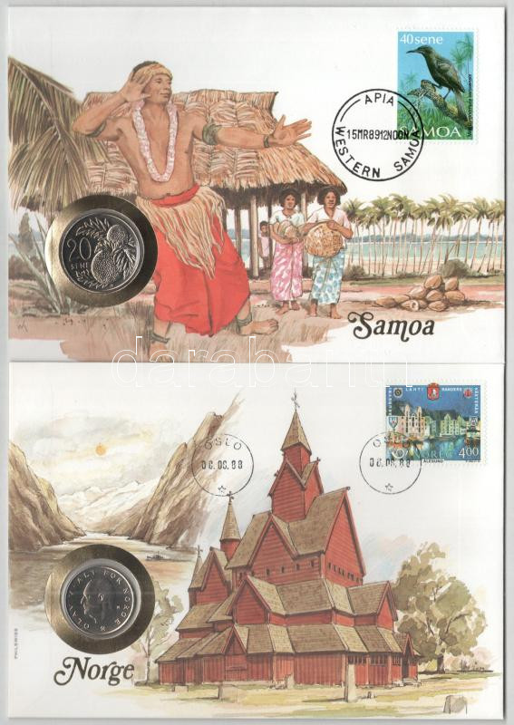 Leírás: 5db-os érmés boríték tétel, mind különféle és német nyelvű tájékoztatóval, benne: Hongkong, Tonga, Jemen, Szamoa, Norvégia T:UNC
