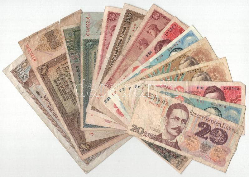 15db vegyes külföldi bankjegy, közte horvát, csehszlovák, német, szerb bankjegyek, közte Horvátország / Független Horvát Állam1941. 100K + 1000K + Szerbia / Német megszállás 1942. 500DC:F,VG 15pcs of mixed banknotes from diff countries, with Croatian, Czechoslovakian, German, Serbian banknotes, with Croatia / Independent State of Croatia 1941. 100 Kuna + 1000 Kuna + Serbia / German occupation 1942. 500 Dinara T:F,VG