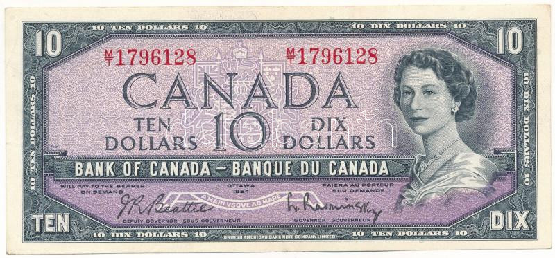 Canada 1954. 10 Dollars, modified hair style. Sign: Beattie-Rasminsky C:F fine paper