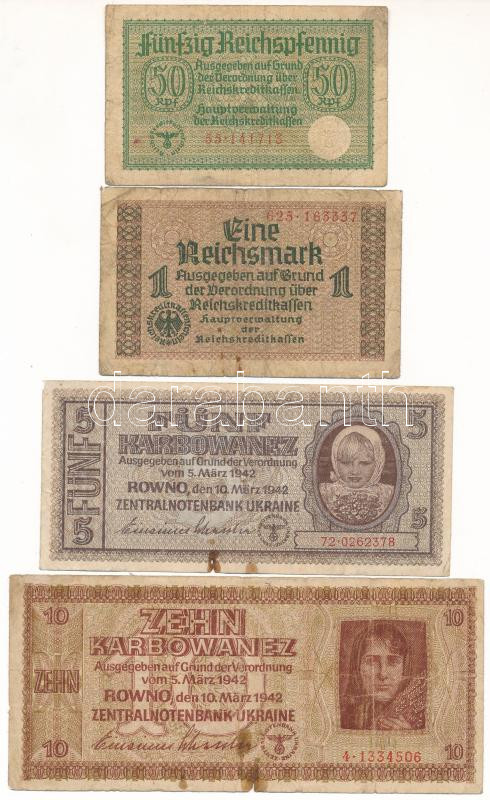 Leírás: Német Harmadik Birodalom DN (1939-1944) 1M + DN (1940-1945) 50pf + Ukrajna / Német megszállás 1942. 5K + 10K T:VG beszakadások, folt