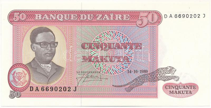 Krause P#17 https://www.darabanth.com/hu/454-Gyorsarveres/454.0/Numizmatika/Kulfoldi-bankjegyek~2000014/Zaire-1980-50m-TUNC-Zaire-1980-50-Makuta-CUNC-Krause-P2317~II3025889
