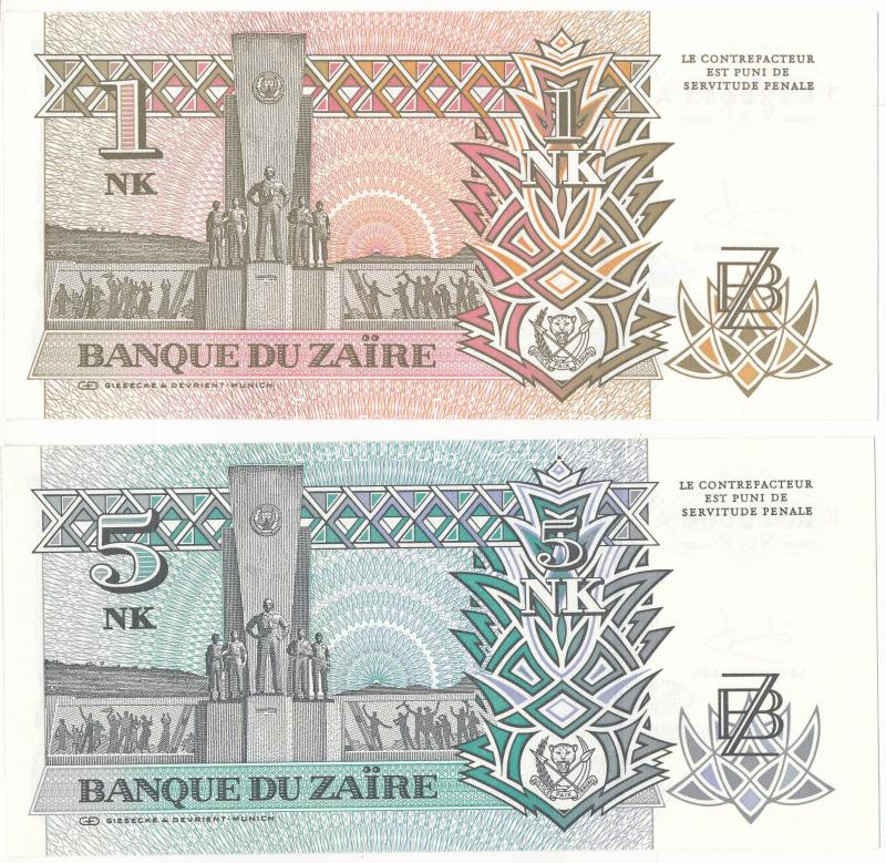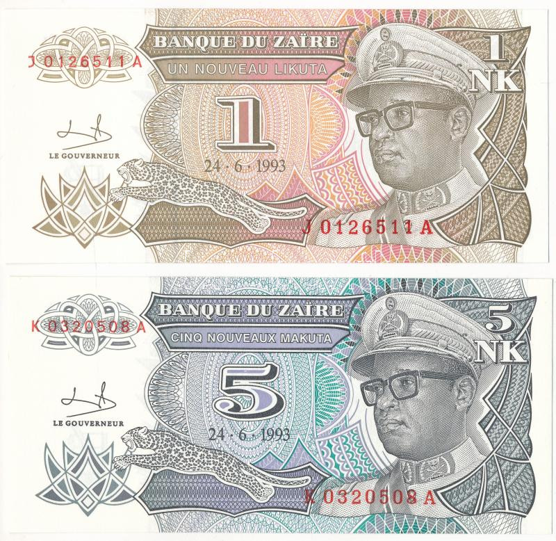 Zaire 1993. 1 Nouveau Zaire + 5 Nouveau ... https://www.darabanth.com/hu/454-Gyorsarveres/454.0/Numizmatika/Kulfoldi-bankjegyek~2000014/Zaire-1993-1NZ-plus-5NZ-TUNC--Zaire-1993-1-Nouveau-Zaire-plus-5-Nouveau-Zaire-CUNC~II2976986