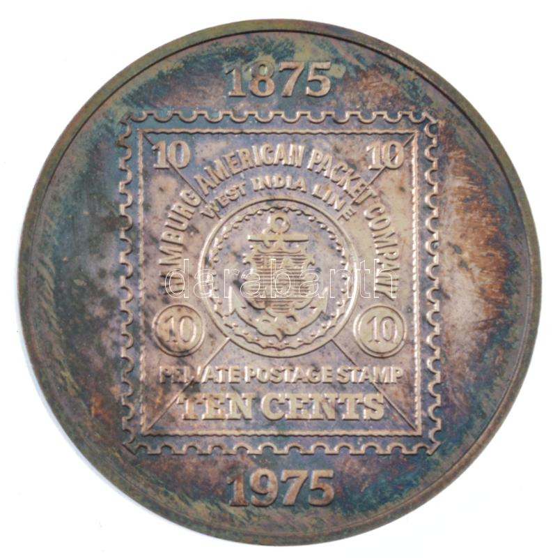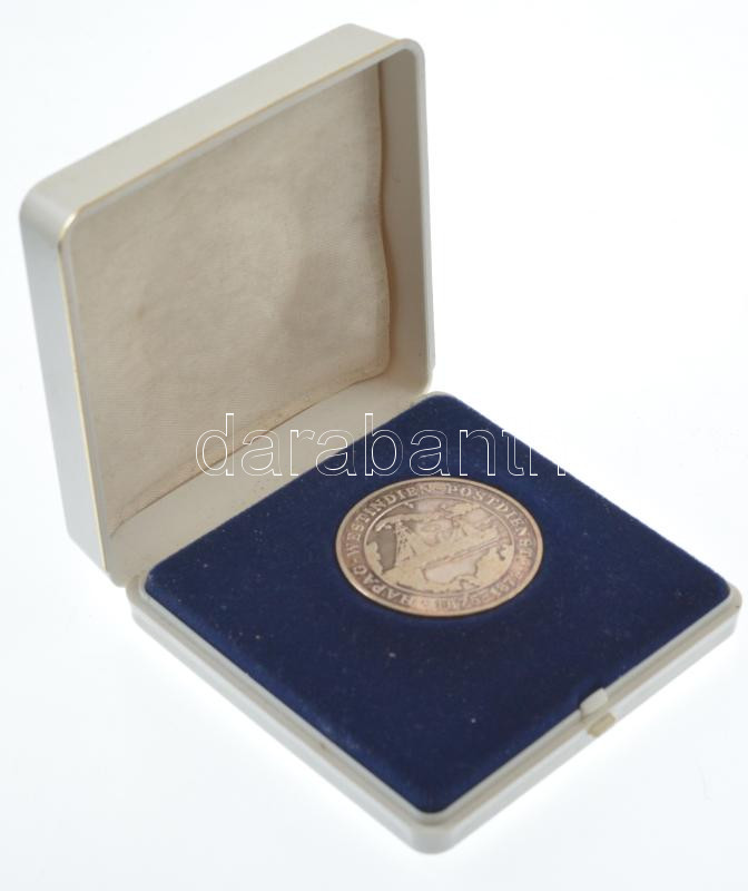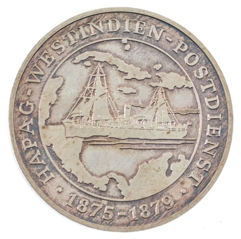 NSZK 1975. "Hapag - Nyugat-Indiai Posta 100. évfordulója" jelzetlen Ag emlékérem eredeti dísztokban (29,92g/38mm) T:XF patina
