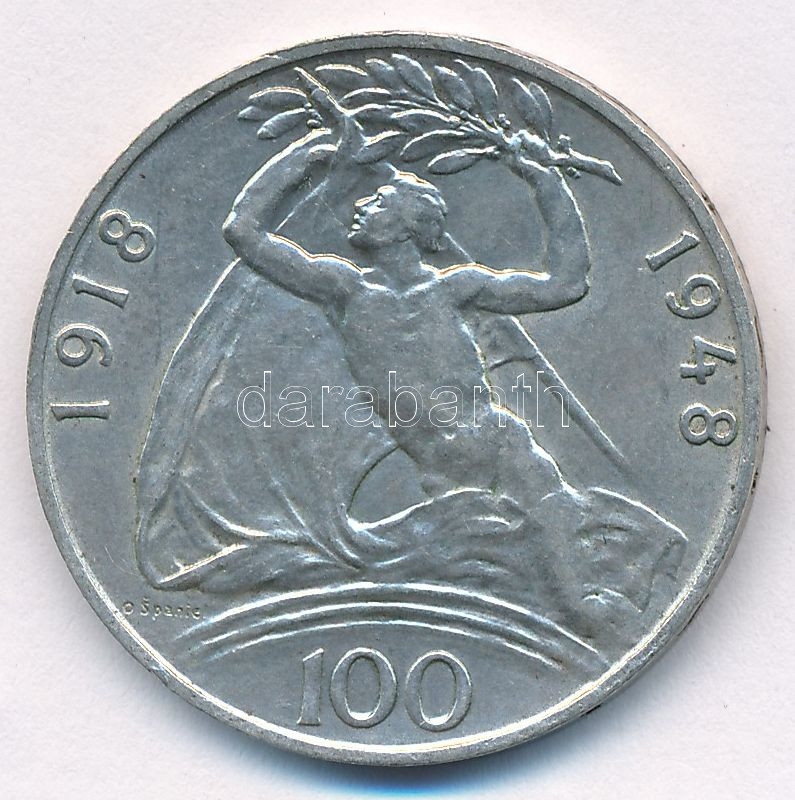 Czechoslovakia 1948. 100 Korun Ag "Independence" C:AU,XF