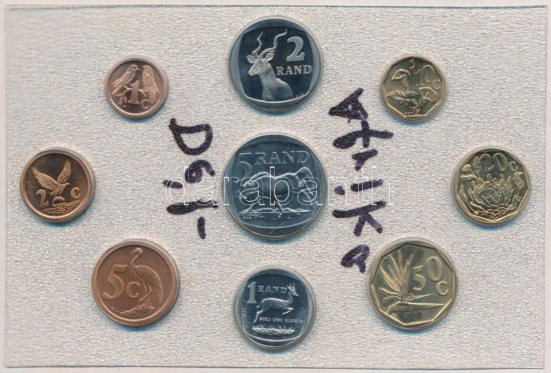 South-A... https://www.darabanth.com/hu/454-Gyorsarveres/454.0/Numizmatika/Kulfoldi-fem-es-ezustpenzek~2000015/Del-Afrika-1995-1c-5R-9xklf-forgalmi-sor-foliatokban-TUNC-South-Africa-1995-1-Cent-5-Rand-~II3026377