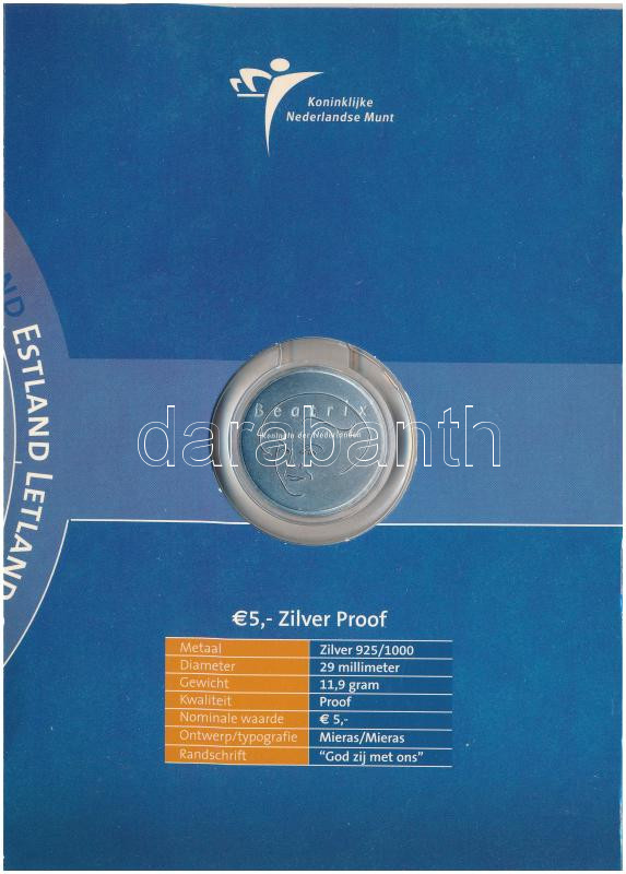 Hollandia 2004. 5E Ag "Beatrix" karton dísztokban, tájékoztatóval T:PP