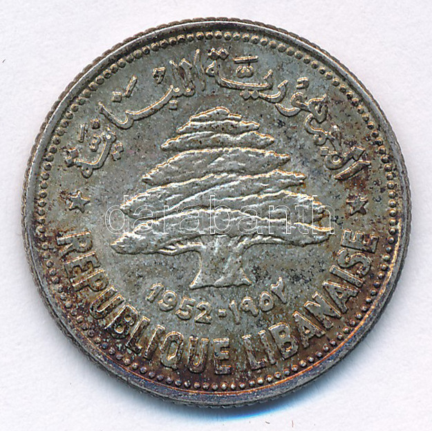 Lebanon 1952. 50 Piastres Ag C:AU p... https://www.darabanth.com/hu/454-Gyorsarveres/454.0/Numizmatika/Kulfoldi-fem-es-ezustpenzek~2000015/Libanon-1952-50p-Ag-TAU-patina--Lebanon-1952-50-Piastres-Ag-CAU-patina--Krause-KM2317~II2987063