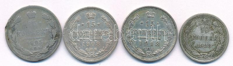 Orosz Birodalom 1905-1913. 15k Ag (3xklf) + 1923. 10k Ag T:XF-F ph.