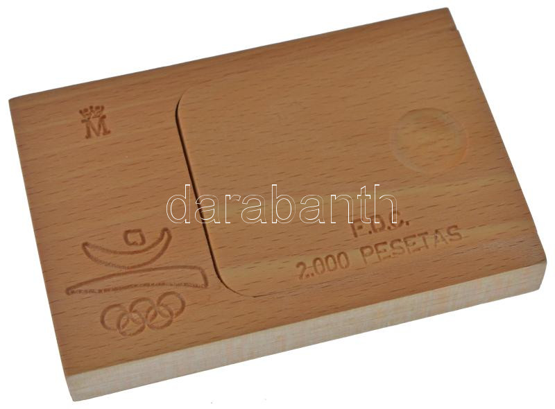 Spanyolország 1990. 2000P Ag "1992 Olimpia Barcelona - Íjászat" tanúsítvánnyal, kapszulában, eredeti fa díszdobozban T:PP