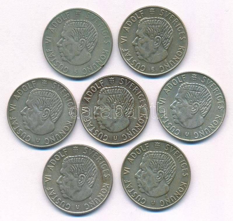 Svédország 1954U-1956U 1K Ag "VI. Gusztáv Adolf" (2xklf) + 1961U-1967U 1K Ag "VI. Gusztáv Adolf" (5xklf) T:AU,XF patina