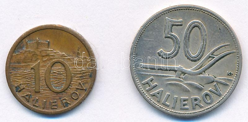 Leírás: Szlovákia 1939. 10h sárgaréz + 1941. 50h Cu-Ni T:XF
