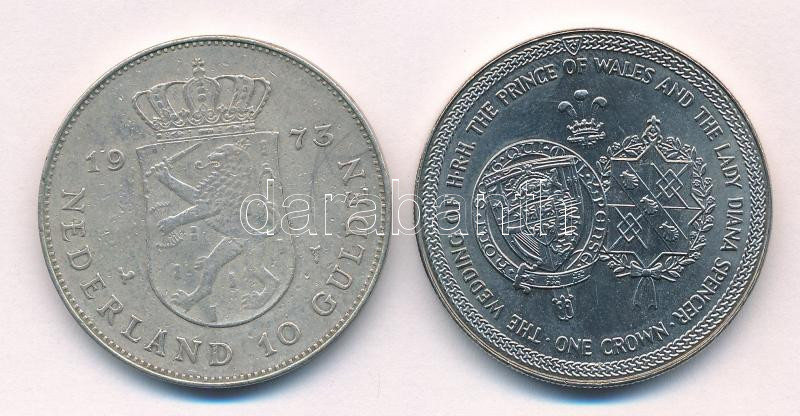 Vegyes: Hollandia 1973. 10G Ag "Julianna - uralkodásának 25. évfordulója" + Man-sziget 1981. 1C "Károly herceg és Diana esküvője" T:AU,VF