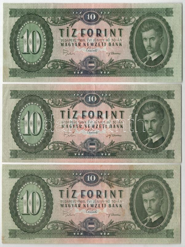 1969. 10Ft (9x) T:F,VG közte szép papír Adamo F7 https://www.darabanth.com/hu/454-Gyorsarveres/454.0/Numizmatika/Magyar-bankjegyek~2000007/1969-10Ft-9x-TF-VG-kozte-szep-papir-Adamo-F7~II3027309