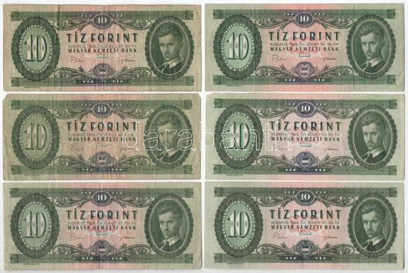 Leírás: 1969. 10Ft (9x) T:F,VG közte szép papír Adamo F7