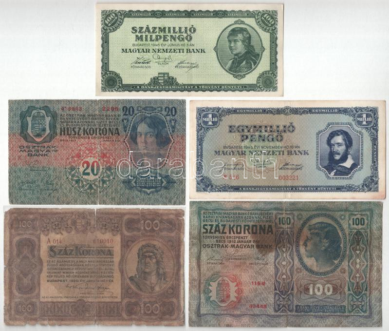 9db-os vegyes korona, pengő bankjegy tétel T:F,VG közte folt, szakadás... https://www.darabanth.com/hu/454-Gyorsarveres/454.0/Numizmatika/Magyar-bankjegyek~2000007/9db-os-vegyes-korona-pengo-bankjegy-tetel-TF-VG-kozte-folt-szakadas-anyaghiany~II3024860