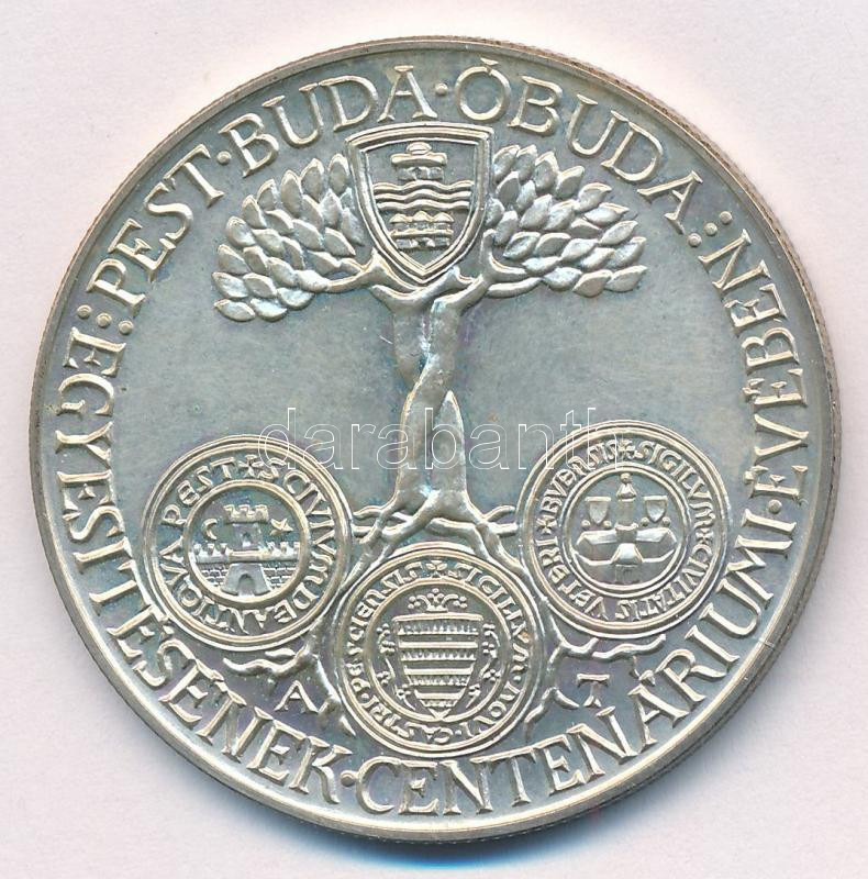 Leírás: Asszonyi Tamás (1942-) 1973. "MÉE IV. Vándorgyűlése Budapest / Pest, Buda, Óbuda egyesítésének centenáriuma" jelzett Ag emlékérem (25,26g/0.800/42,5mm) T:AU Adamo BP6